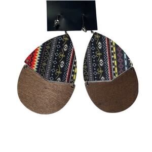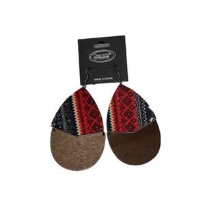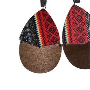 NWT Wooden Fabric Covered Boho Aztec Dangle Earrings Black Red Multicolored