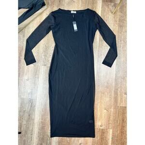 NWT Woods By Jordyn Luna Dress Sleek Black Mesh Midi Dress