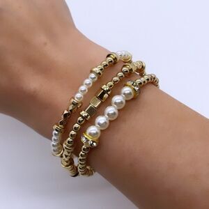 (3) Elegantly Crafted Gold & Pearl Beaded Bracelets.