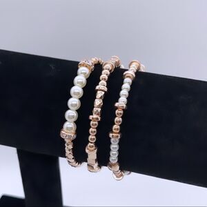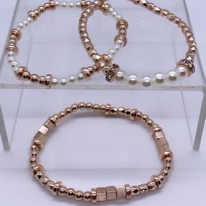 (3) Elegantly Crafted Rose Gold Beaded Bracelets.