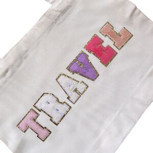 (1) TRAVEL Varsity Letter Patch Canvas Tote Bag