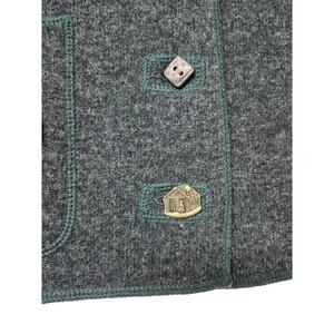 NWT Woolrich 100% Lambs Wool Charcoal Vest Bear & Deer Applique Green Stitch Trim Mixed Decrotive Buttons Sz M