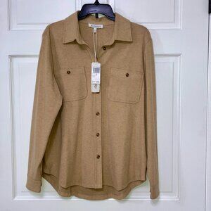 NWT Workshop Republic button down shirt Size Large is comfortable yet polished. With a 27.75-inch shirt tail hem, this top features a collared neckline and button front closure for versatile wear. Care: Machine wash cold for easy maintenance. Measurements: Approximately 28 inches in length, and 24 inches PTP.