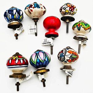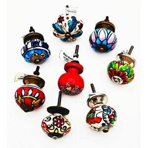 NWT World Market Hand-Painted Ceramic & 1 Wood Decorative Knobs β Set of 8