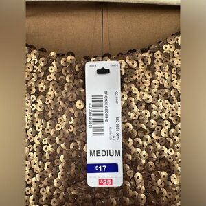 NWT Worthington Bronze Sequin Party Top. Fully sequined front and back. Cap sleeves. Well fitting with darts at bust. SIZE MEDIUM