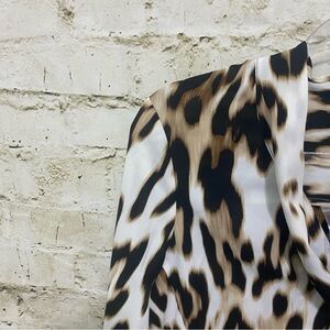 NWT Worthington Brown Black Animal Print V Neck Tie Neck Button Up Top