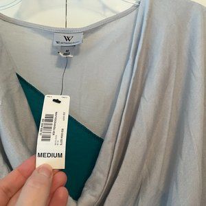 NWT! Worthington Cowlneck Blouse - Green/Navy/Silver - M