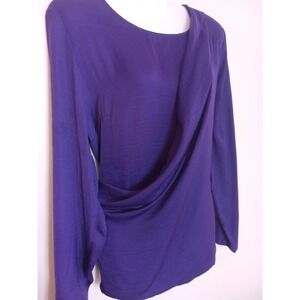 You are looking at a beautiful NWT Worthington brand purple silky long sleeve faux wrap front top in a size large. The color is officially named "Palace Purple" for a reason, you'll look like royalty wearing it!