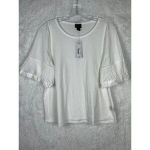 NWT Worthington Short Sleeve Large White Top Layered Bell Sleeve