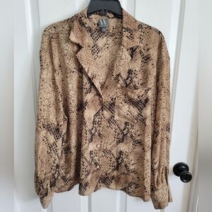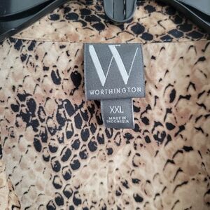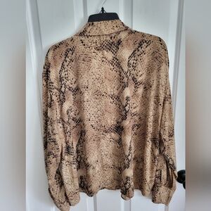 NWT Worthington Tan Black Snakeprint Long Sleeve Front Button Blouse Size XXL