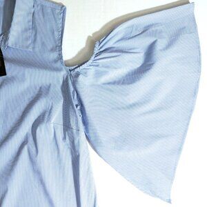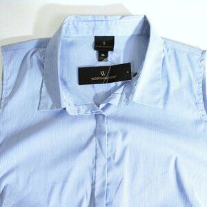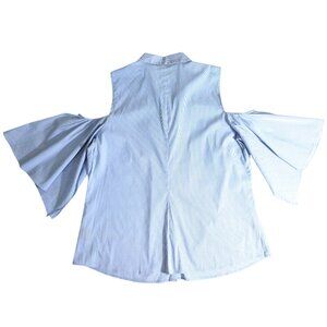 NWT Worthington Women's Cold Shoulder Bell Sleeve Blue/White Stripe Button Up XL