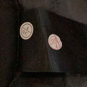 They have a wide black stripe down each side, a zipper & clasp front closure, & side slit pockets.