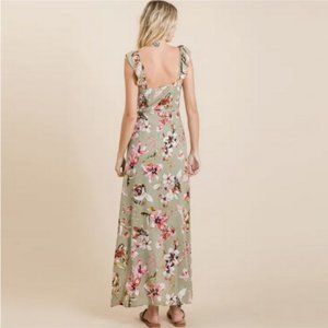 New never worn, Woven Printed Floral Hi-low wrap Dress, Ruffle on sleeves , fabric of Rayon