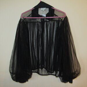 New With Tags Wowo Black Sheer Plus Size 3X Top Edgy Going Out Party Balloon Sleeve. Button front.