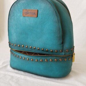NWT! Wrangler Faux Leather Backpack w/Hammered Studs Accent & Unique Flaw