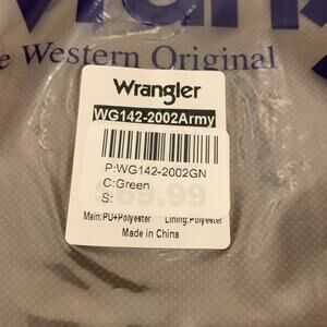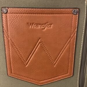 Wrangler logo embroidered on the front with faux leather trim