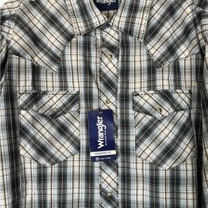 NWT Wrangler Mens Plaid Print Long Sleeve Snap Wester Shirt Size XL