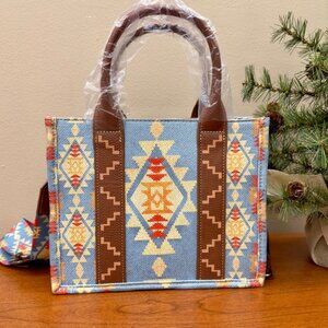 NWT Wrangler Mini Tote Blue Southwestern Aztec Small Crossbody Purse Handbag