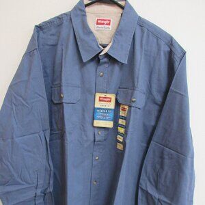 NWT Wrangler Relaxed Fit Blue Long Sleeve Button-Up Canvas Work Shirt 2XL