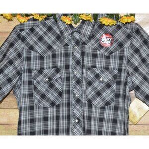NWT Wrangler Western Button Up Shirt Men's L Short Sleeve Black Plaid Pearl Snap