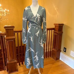 NWT Wrap Midi Floral Gray-Blue Tall Lightweight Dress Wmn’s 6
