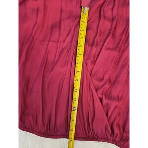 Measurements: 27in arm. 20in P2P. 15in long. NWT. Elevate your wardrobe with this elegant satin-finish blouse from Old Navy, size L. The rich burgundy-wine hue catches the light beautifully, adding depth and sophistication to any outfit. The design features a flattering surplice (wrap-style) V-neckline and long sleeves with a gently elastic hem that gives a slightly blouson effect at the waist — perfect whether you wear it tucked or untucked. Ideal for date night, holiday events, or a stylish office look, this versatile top pairs well with tailored trousers, pencil skirts, or dark denim.