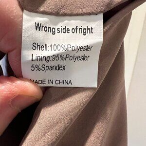 Material: 100% Polyester, Lining: 95% Polyester, 5% Spandex