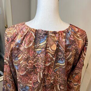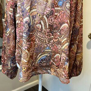 Wrong Side of Right Paisley Pleated Long Sleeve Chiffon Top, Size 3 (Small to medium to me, see measurements below)