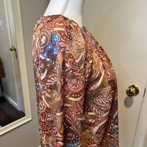 NWT Wrong Side of Right Paisley Pleated Long Sleeve Chiffon Top, Size 3 (S/M)