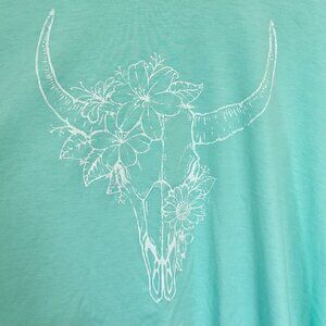 Wst Cst Nordstrom Boxy Crop Oversized Mint White Cow Skull T-Shirt