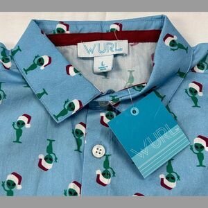 NWT Wurl Boys Size Large Blue Christmas Collared Shirt Green Santa Aliens Cruise