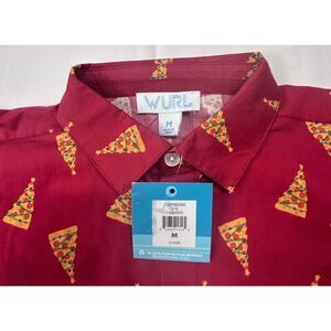 NWT Wurl Boys Size Medium Red Christmas Shirt Cruise Pizza Slice Christmas Trees
