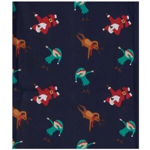 The print showcases a dabbing Santa, Elf & Reindeer in a festive Christmas setting, adding a touch of whimsy to any outfit.