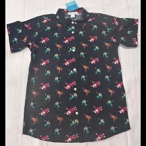 NWT Wurl Boys Sz Lg Christmas Shirt Cruise Dabbing Santa Elf Reindeer Button Up