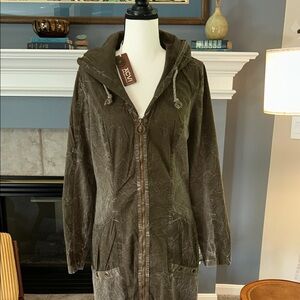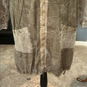 XCVI NEW MEDIUM Stylish khaki utility jacket with hood. Features zip closure and drawstring hem. Perfect for casual wear. Could also be worn as a tunic with leggings. Very chic!