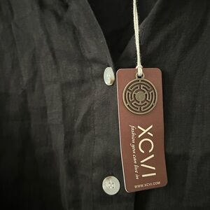 NWT XCVI Long-Sleeve Button Linen Blouse- Dark Grey/Black Size Medium