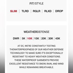 * Waterproofing: Weather Defense 10K [10,000mm/5,000g]