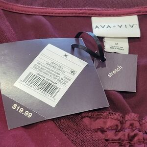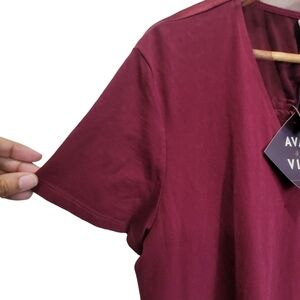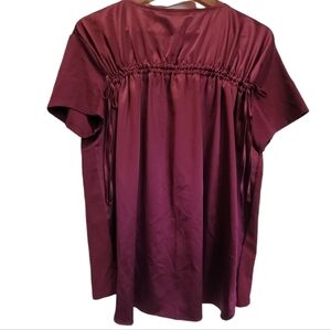 NWT XL Cotton Blend Red Short Sleeve Blouse with Decorative Back Tie Strings