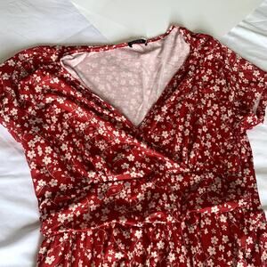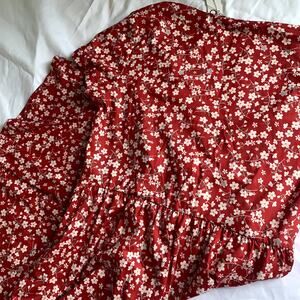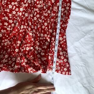 New with tags red and white floral knee length midi dress with two side pockets. The dress is made from lightweight breathable cotton fabric, making it perfect for summer.