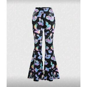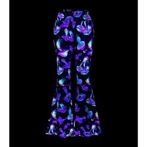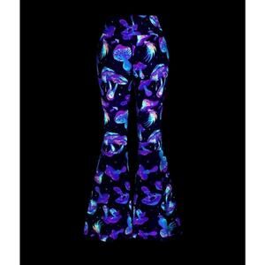 NWT XL Retro Stretchy Pants Blacklight Mushroom Rave Festival Flares