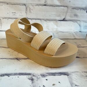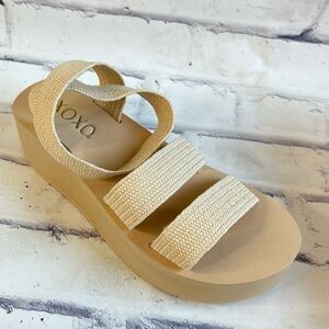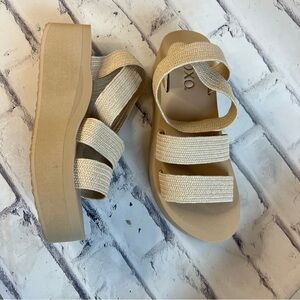 NWT XOXO woman’s Bill foam platform with stretch woven straps size 8.5