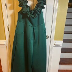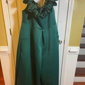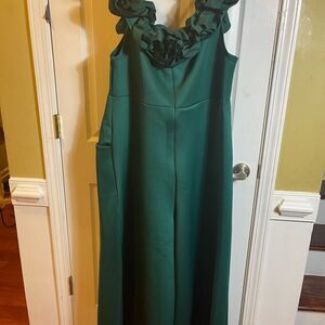 NWT XPLUS Wear Hunter Green jumpsuit ruffle neck and shoulder Size 3XL