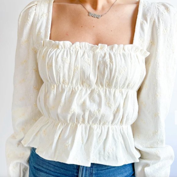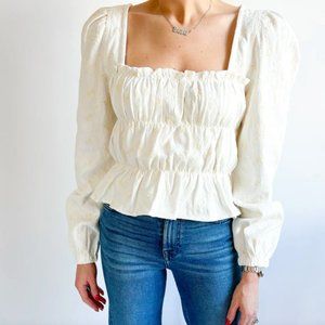 NWT XS EMMIE RUCHED EMBROIDERED DENIM TOP By En Saison