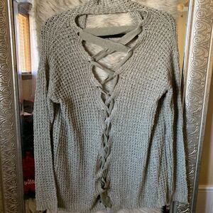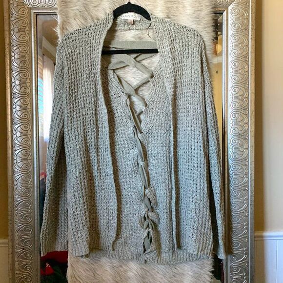 Brand new with tags size xs, no flaws. Green/gray marled cardigan with cute lace up back.