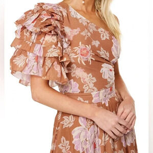 NWT XS MAGALI PASCAL desa top in jasmine dark one shoulder ruffle