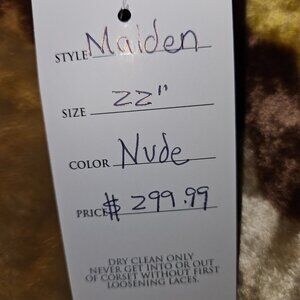 This POST for ONE HANDMADE Long Line New With TAGS DEAD STOCK shape The MAIDEN from USA designer Corset Creations in LIGHT NUDE. Size 22"/XS Best for natural waist 25" to 29" depending on your tight lacing experience. ALL MODELS are wearing the MAIDEN under bust TIGHT LACING, WAIST TRAINING corset. LAST ONLY SMALL SIZE THIS COLOR. Full description below.