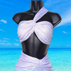 NWT XS / S Purple Lilac Lavender Beach Sarong Skirt Bandeau Wrap Set Cover Up