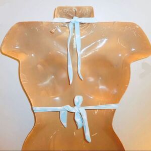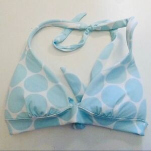 NWT XS VS Vintage Halter Removable Push Up Pads Blue White Polka Dots Bikini Top
