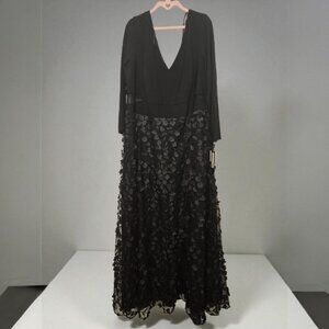 NWT XSCAPE Black Floral Appliqué Mesh Maxi Gown Plus Size 22W