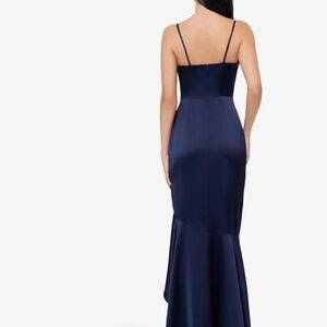 NWT XSCAPE L Satin Dress With A Fun Side Ruffle Makes For A Flattering size 10